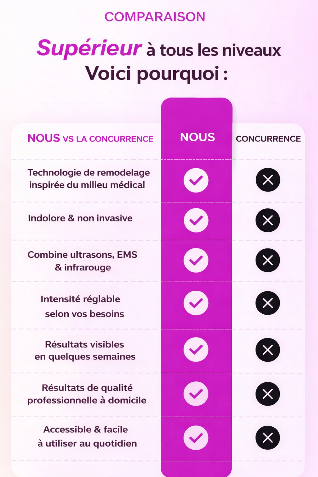 Il est conçu pour une utilisation à domicile, régulière et confortable, sans irritation ni inconfort.